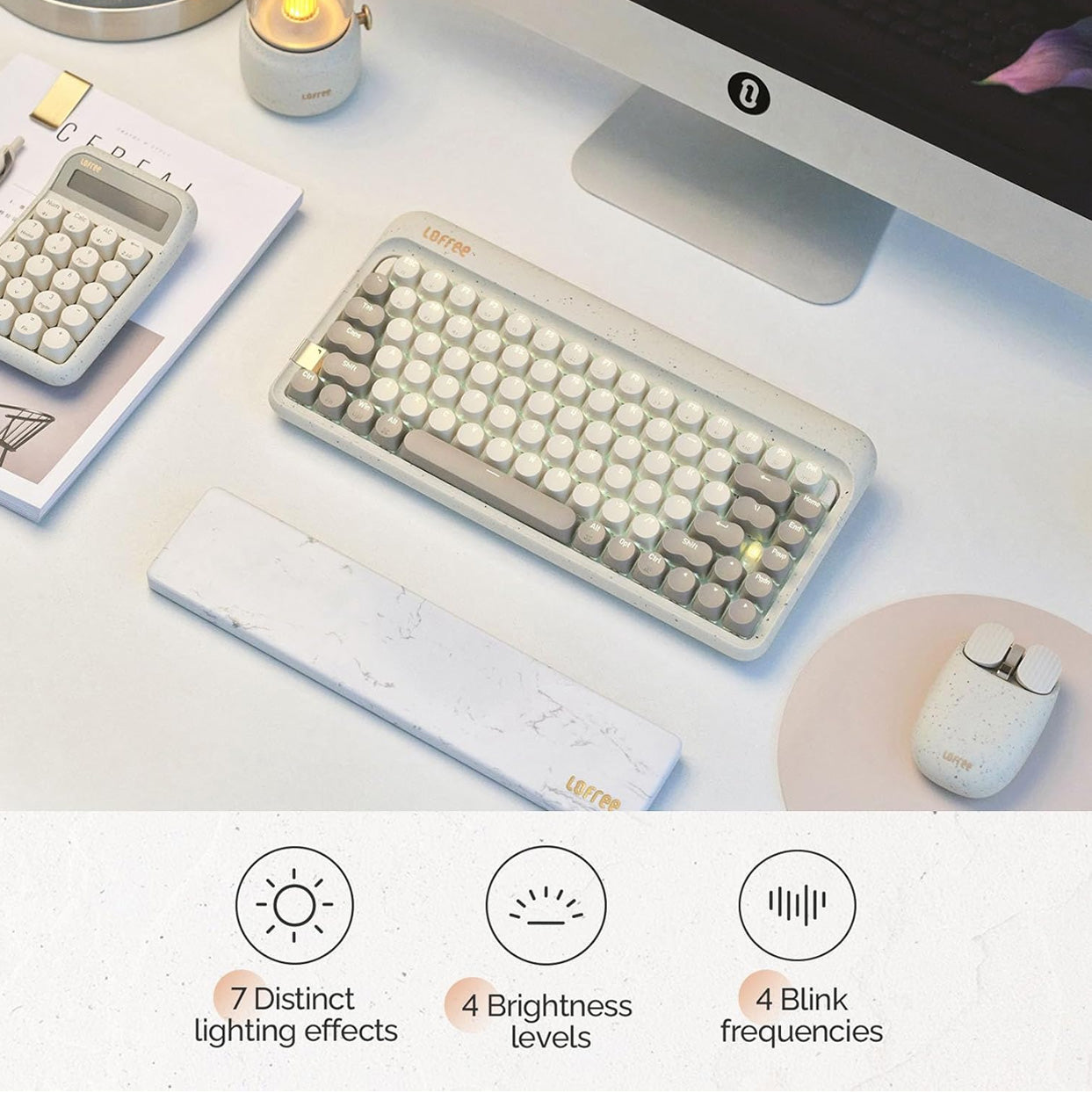 White LED backlight with 7 lighting effects for a clean and calm desk vibe.