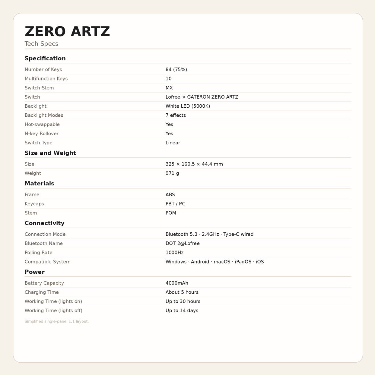 • 1 × Lofree ZERO ARTZ Keyboard