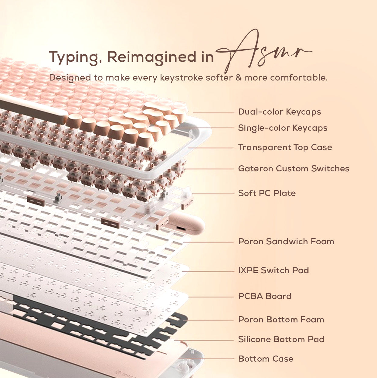 Gateron Custom Pink Switches – soft, comfy typing feel
